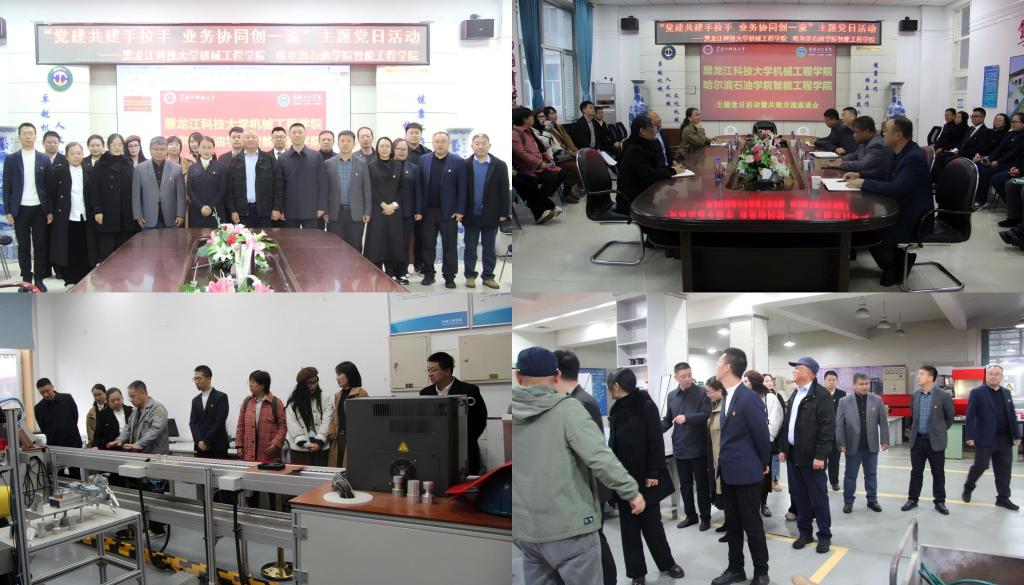 为凝聚合作共识、建强基层党组织战斗堡垒、推动党建工作与业务工作同向发力、同步提升,5月15日下午,黑龙江科技大学机械工程学院与哈尔滨石油学院智能工程学院联合举办了“党建共建手拉手·业务协同创一流”主题党日活动。哈尔滨石油学院智能工程学院院长王俊发、党总支书记吴东爽、副院长陈泮洁和部分教师代表,机械工程学院党委班子成员、党支部书记、基层教学组织负责人参加了活动。