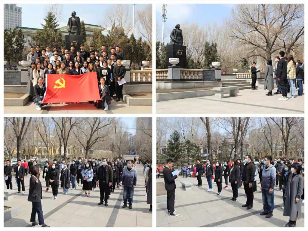 开展党建带团建主题活动。4月18日上午,开展以“百年建党情、共筑中国梦”为主题的党建带团建活动。走进一曼公园,党员同志和团员们深受英烈精神感染,纷纷表示今后要更加珍惜来之不易幸福生活。学生党员代表刘喜睿同志在党旗下深刻理解并阐述了学习党史的重要意义以及青年党员的历史使命;新发展团员代表李政林在赵一曼革命烈士雕像前发出要发扬革命光荣传统,努力学习文化科学知识,为中华民族的伟大复兴贡献自己的一份力量的号召。