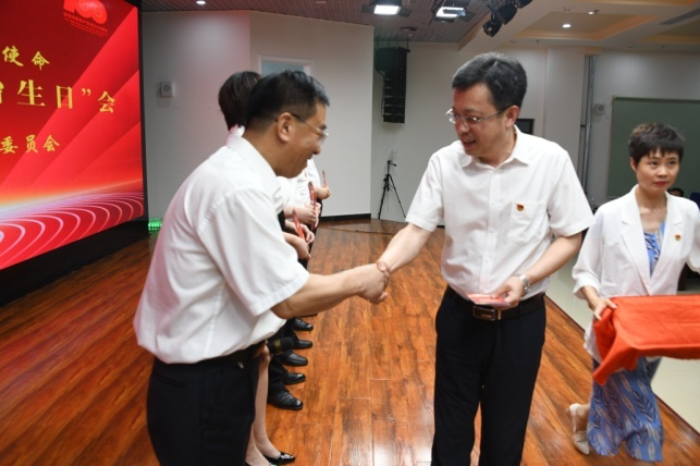 校党委书记周宏力为党员代表赠送政治生日贺卡