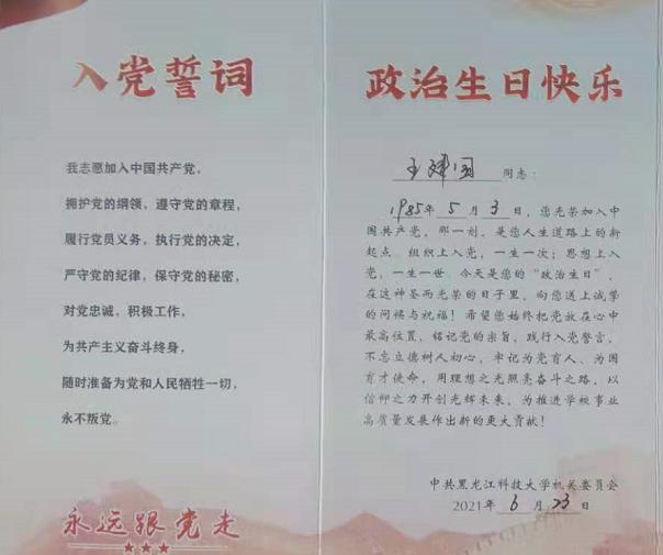 中共黑龙江科技大学机关委员会(以下简称机关党委)积极探索党员过集体“政治生日”的组织形式,通过集体“政治生日”的庄重仪式感和系列活动,为每位党员补足“精神之钙”,激励提醒党员时刻不忘初心、牢记使命,引导党员进一步强化身份意识、宗旨意识、责任意识和奉献意识,让党员感受组织的关怀和温暖,增强党员对党组织的归属感。
